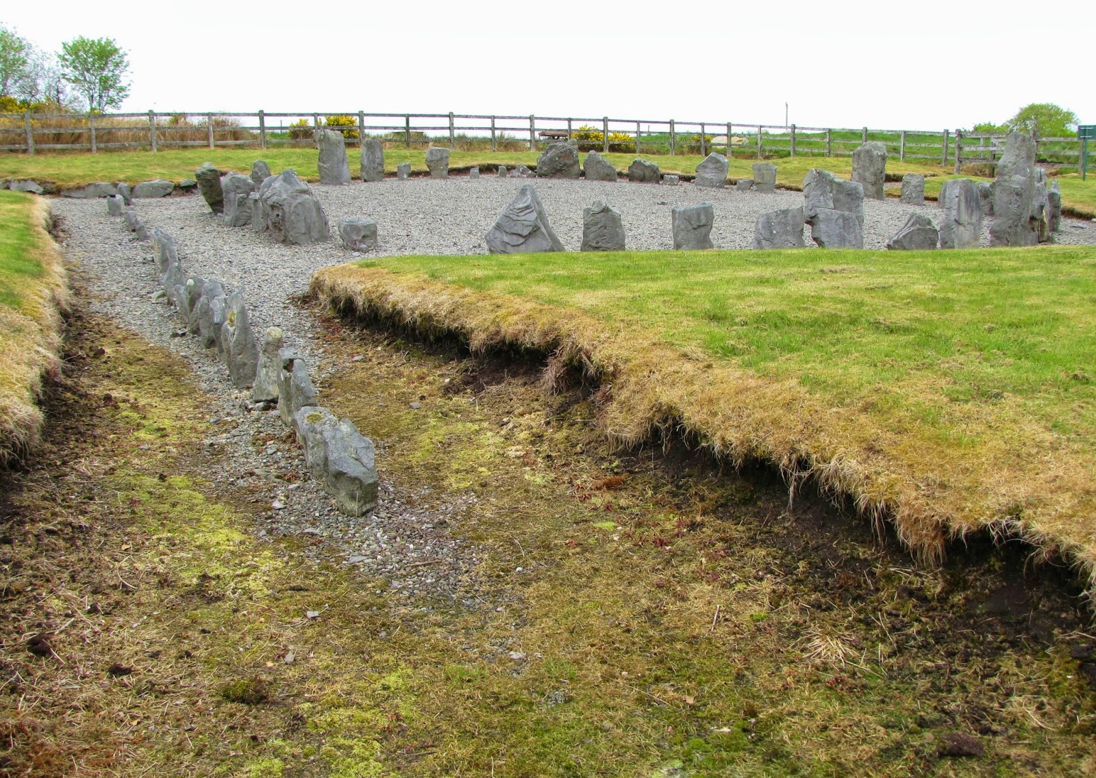 We never would have found our destination without the directions posted by Jim Dempsey at Megalithic Ireland. Even with Dempsey’s helpful hints, we came very close to giving up the chase after realizing that the fields containing the megaliths were covered in stony outcroppings, several of which seemed to be possible candidates for the particular rocks we were searching for. However, having spent hours trying to locate the site, including some tense minutes driving up and then backing down the long, rough, single-lane road that serves as the only access to the area, we finally decided to park, find a way through a low wire fence, and wander towards the shiniest, flattest, most promising cluster of stones.